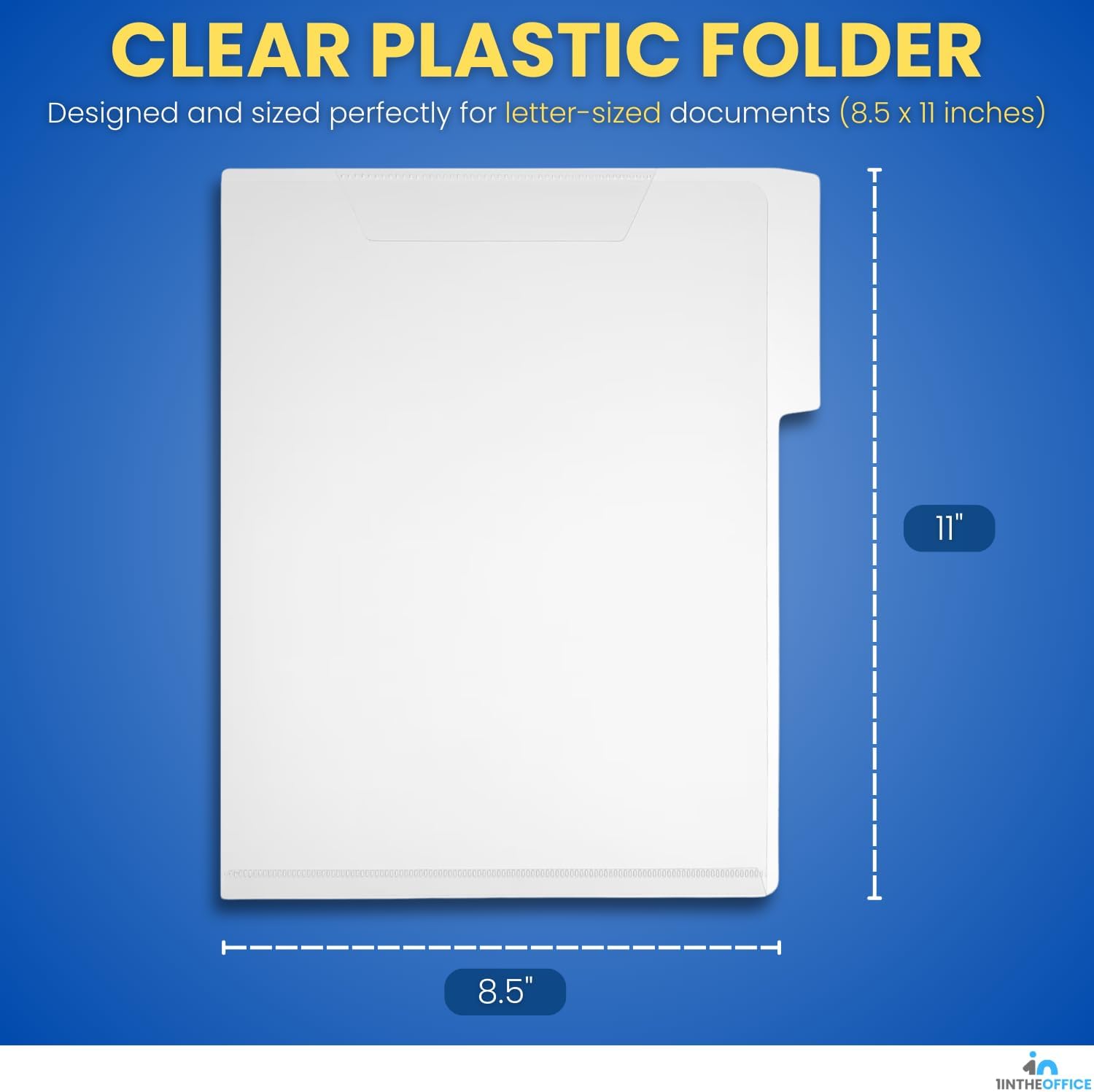 1InTheOffice Clear Plastic Folder Letter Size, Poly File Folder 3 Tab, (6 Pack)