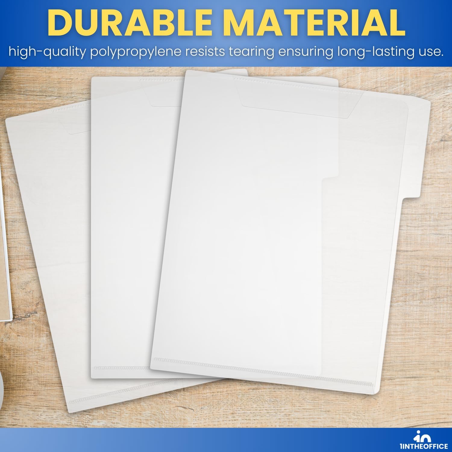 - These folders are made of clear plastic and are designed for letter-sized documents. The L-style design makes it easy to insert and remove papers and helps keep them secure.