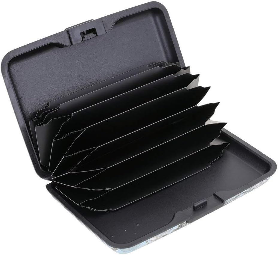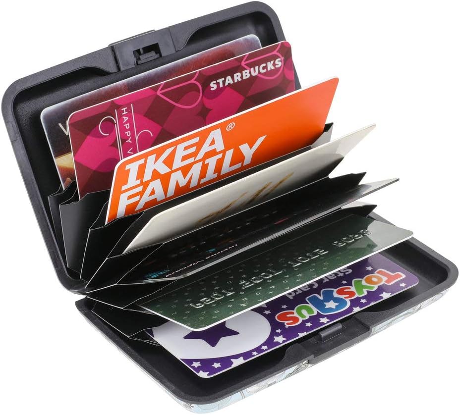 - This credit card holder is made of aluminum shells, ABS plastic frame and clasp closure, RFID-blocking will protect your card data from RFID scanners and readers.