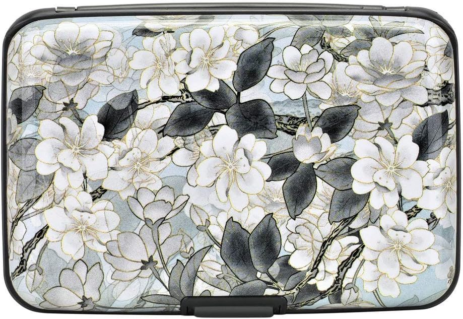 ELFISH Mini RFID Aluminum Wallet Credit Cards Holder Business Card Case Metal ID Case for Men Women (White Lotus)