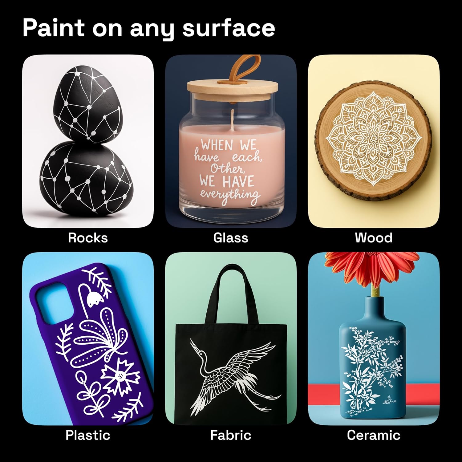 - 0.7 mm Extra Fine Tip: Use our fine tip paint pen to highlight details in your art. The white paint pen fine tip is great for touch ups. Create masterpieces with these white pens for art.