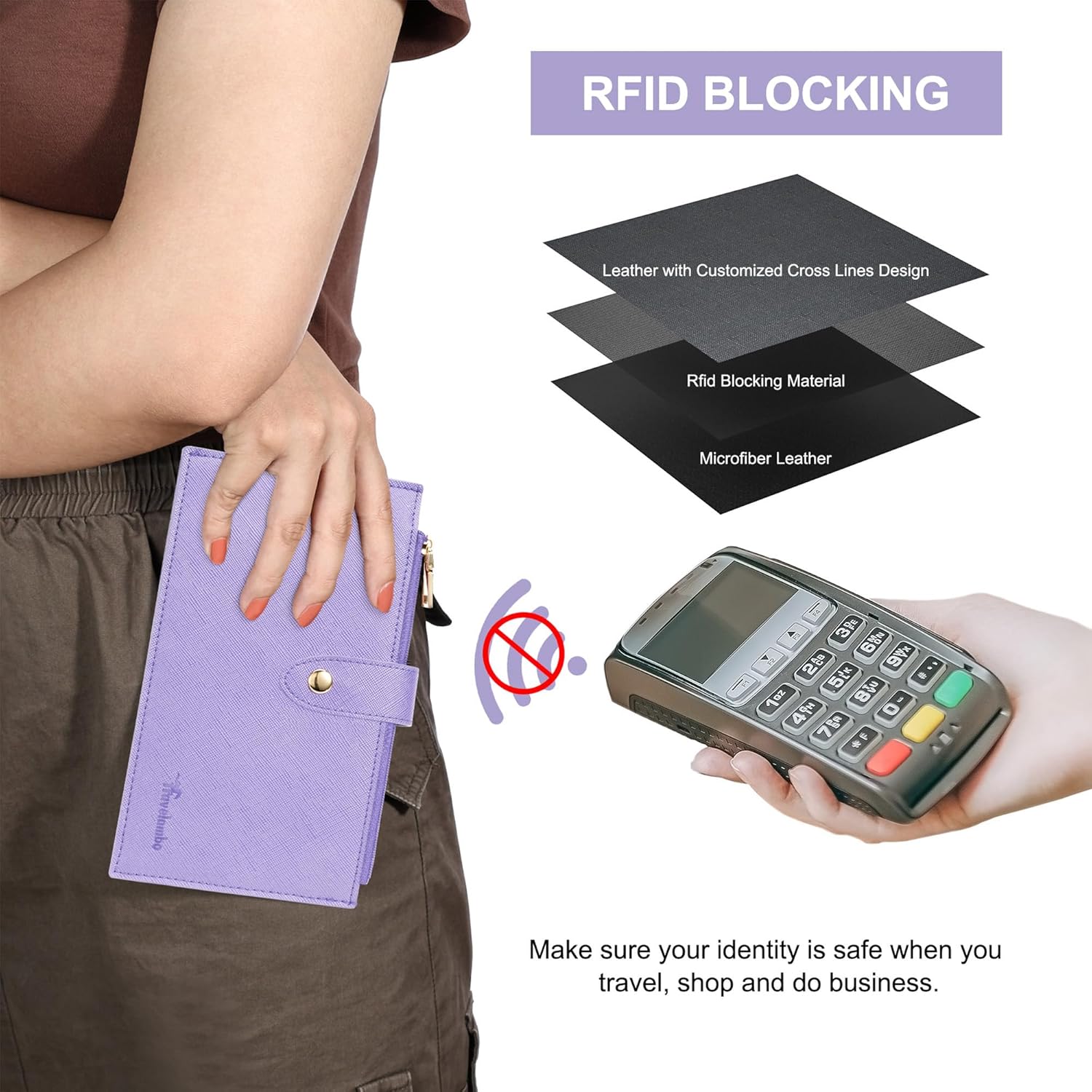 Travelambo RFID Wallet Women Large Size Bifold Multi Card Wallet Case with Zipper Pocke Credit Card Holder for Women