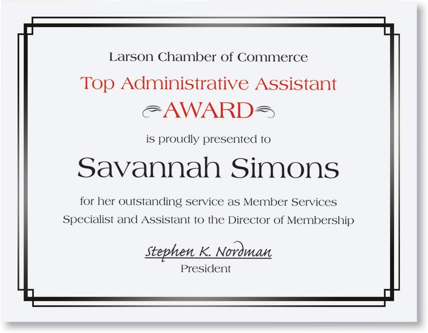 - Elegant Design: Each box includes 50 embossed 8½" x 11" certificates with a stunning double black foil inner border on 38lb white paper, adding a touch of sophistication to every award. Note: internal border dimensions measure 6¾" x 9½"