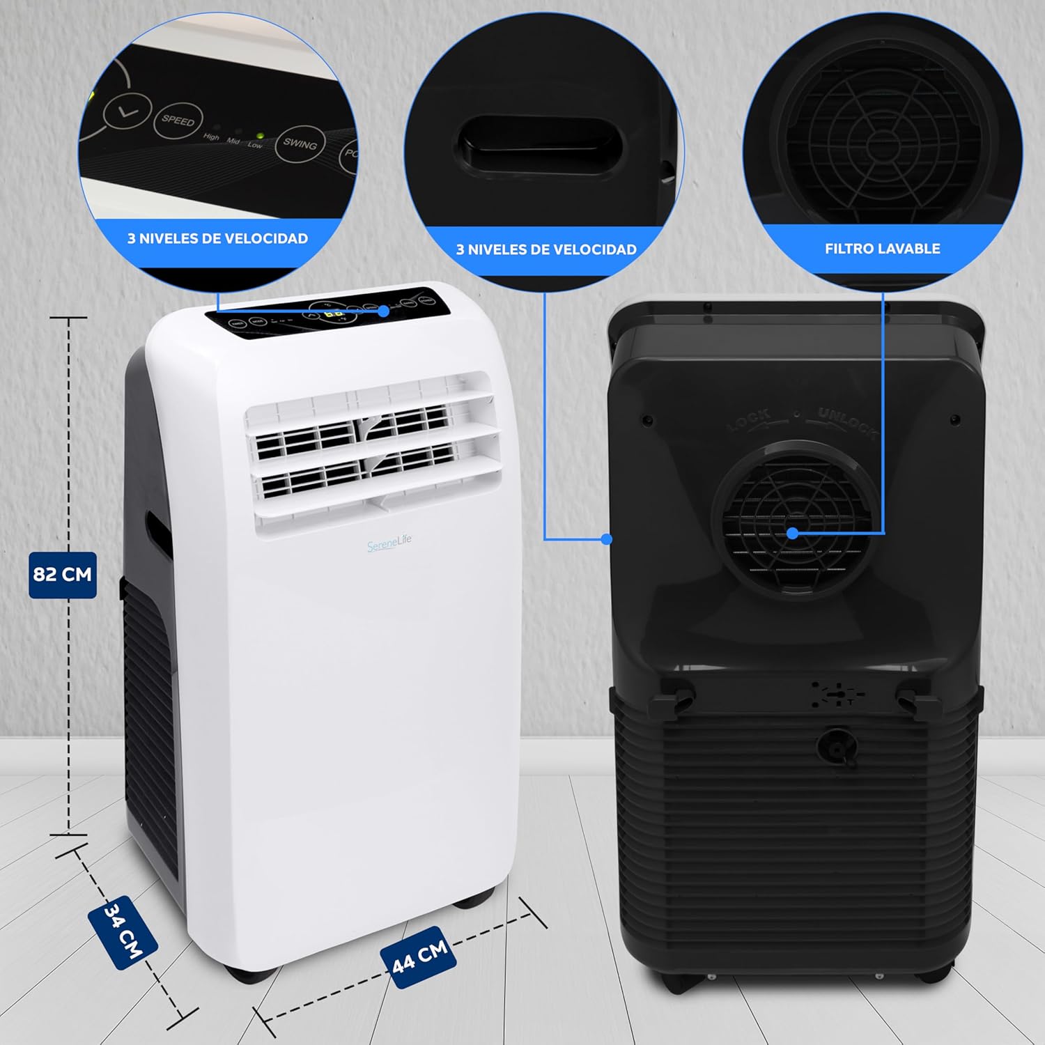 SereneLife Small Air Conditioner Portable 10,000 BTU with Built-in Dehumidifier - Portable AC unit for rooms up to 450 sq ft - Remote Control, Window Mount Exhaust Kit