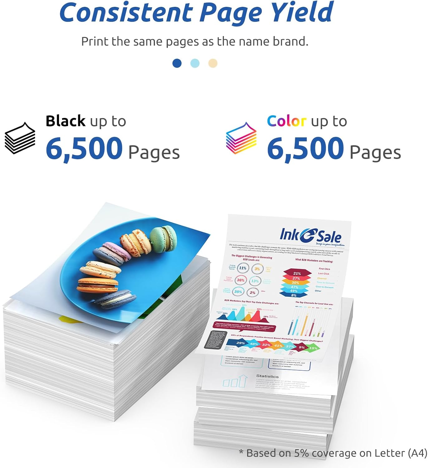 - Estimated page yield: 6500 pages per black cartridge, 6500 pages per Cyan/Yellow/Magenta cartridge at 5% coverage (Letter/A4)
