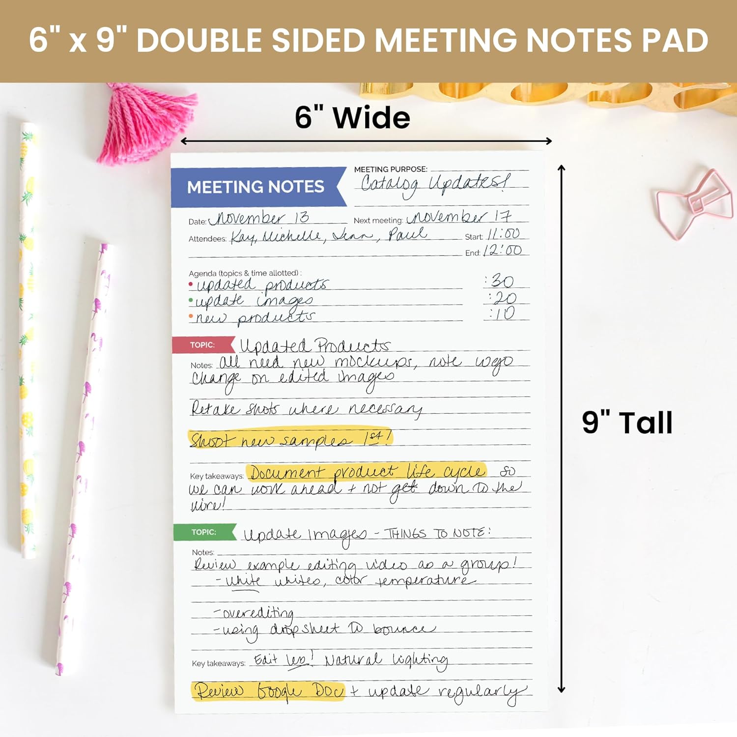 - 6β x 9β MEETING PLANNER TO DO PAD: Measuring 6" wide x 9" tall, this professional notepad for work is compact enough to carry anywhere while offering ample writing space. Perfect for busy professionals, project managers, students, and anyone looking to boost their office productivity.