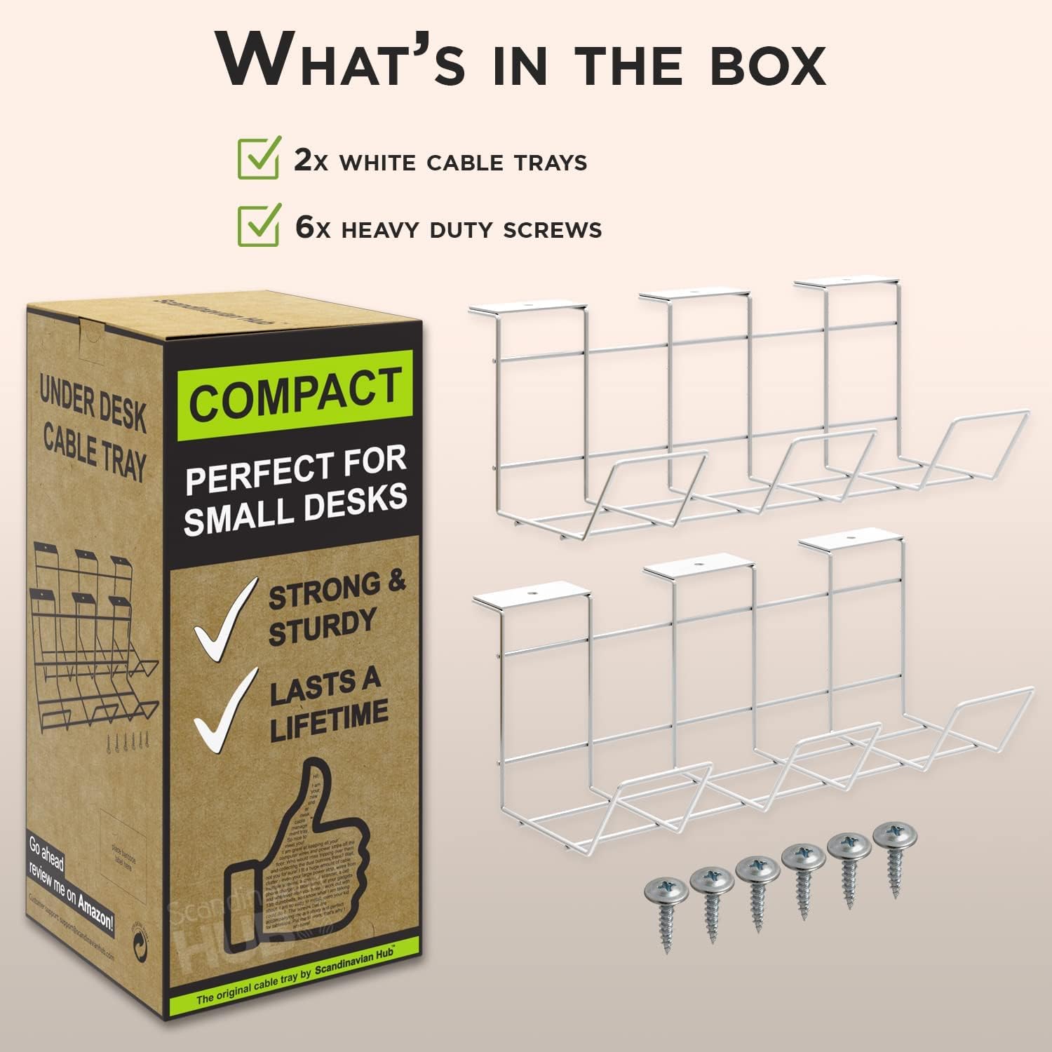 - Join more than 100,000 satisfied customers who have already untangled their cable mess with Scandinavian Hub cable trays. Our under table cable management kit is made out of steel, giving it sturdy construction and is the Strongest Kit on Amazon. These under desk wire organizers are fully welded and powder coated for long life.