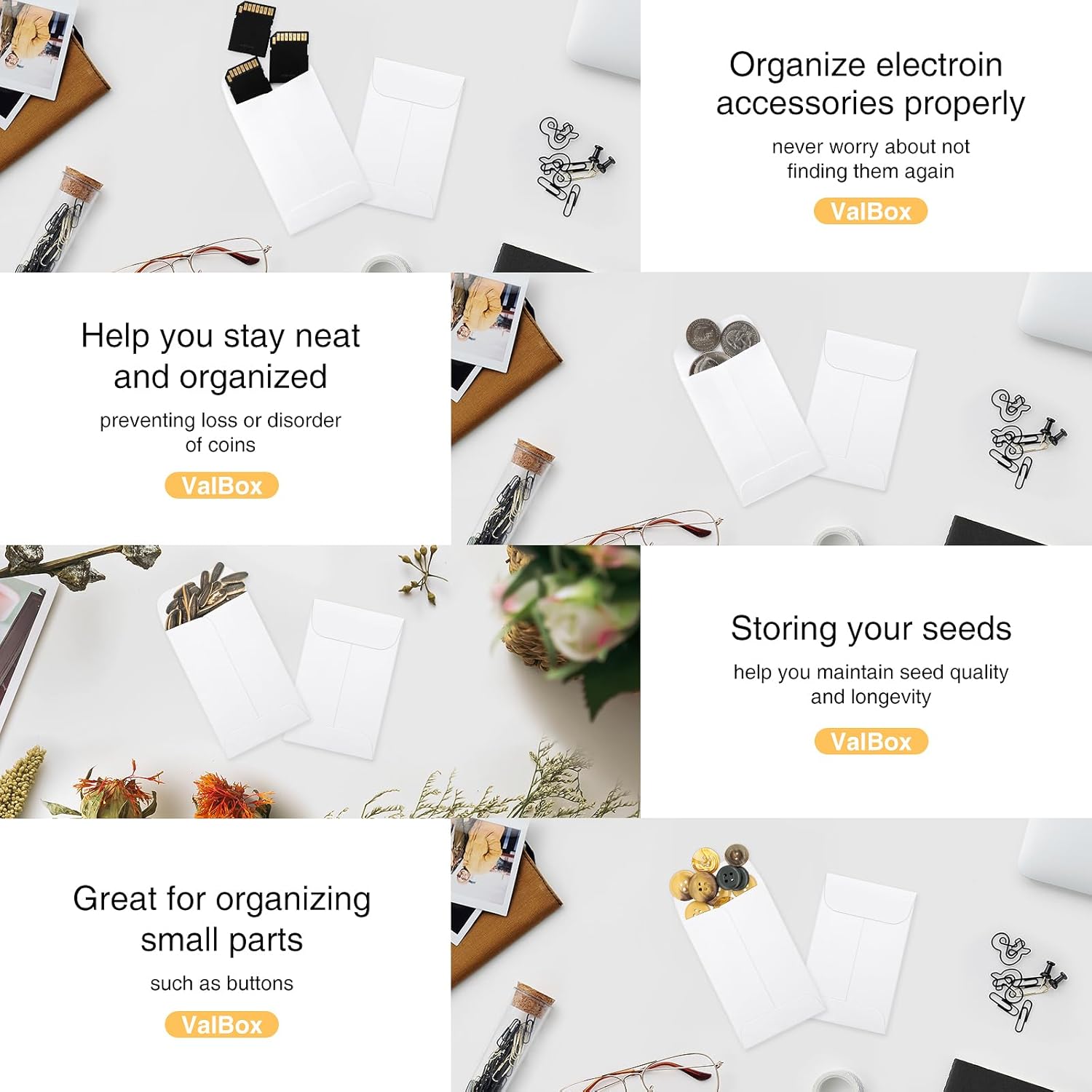 ValBox #1 Coin Envelopes 500Pcs/Box 2.25 x 3.5 Small Parts Envelope with Gummed Flap for Home, Garden or Office Use, White Kraft Seed Envelopes