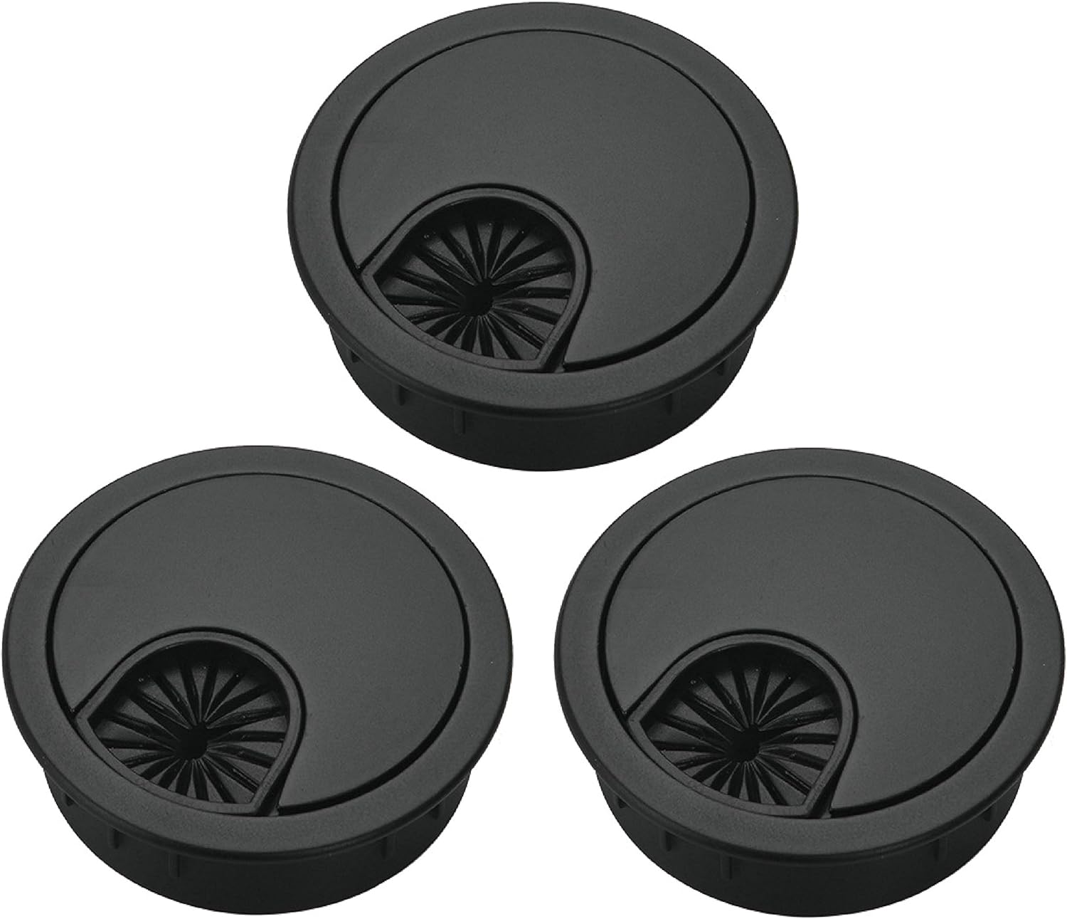 3 Pcs Satin Nickel Metal Cable Grommet, Zinc Alloy Desk Table Grommet Cable Cord Hole Cover for Home and Office, Fits 2inchs Hole 50MM Black