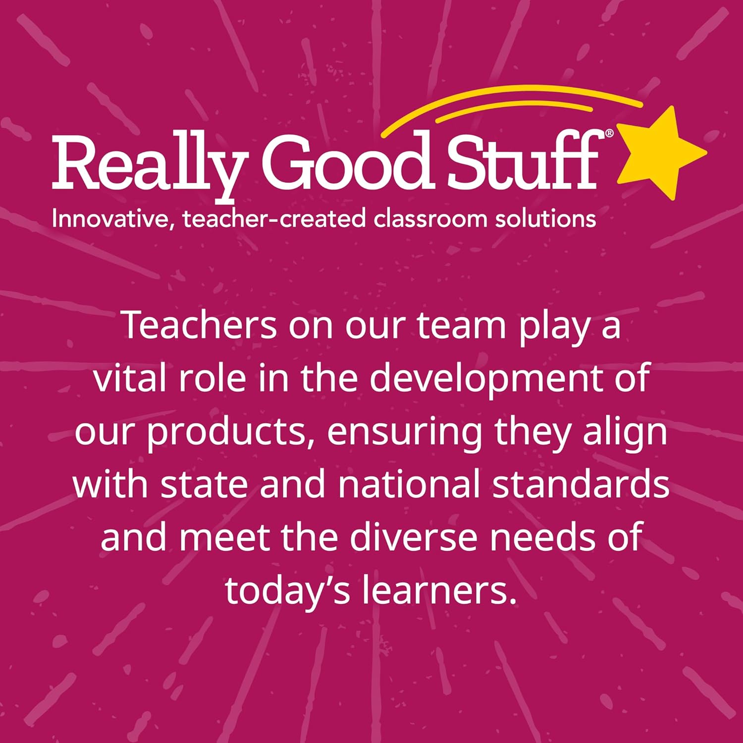 - ALL-INCLUSIVE SET: The set comes with 1 nylon fabric pocket chart with grommets and magnetic strips (Size: 9½" by 33⅜"), 1 double-sided card with Write Again wipe-off laminate (Size: 8½" by 7¾"), 6 cards, double-sided Write Again wipe-off laminate (Size: 8½" by 3¾" each), 32 clothespins (colors may vary) and 1 Really Good Stuff Activity Guide.