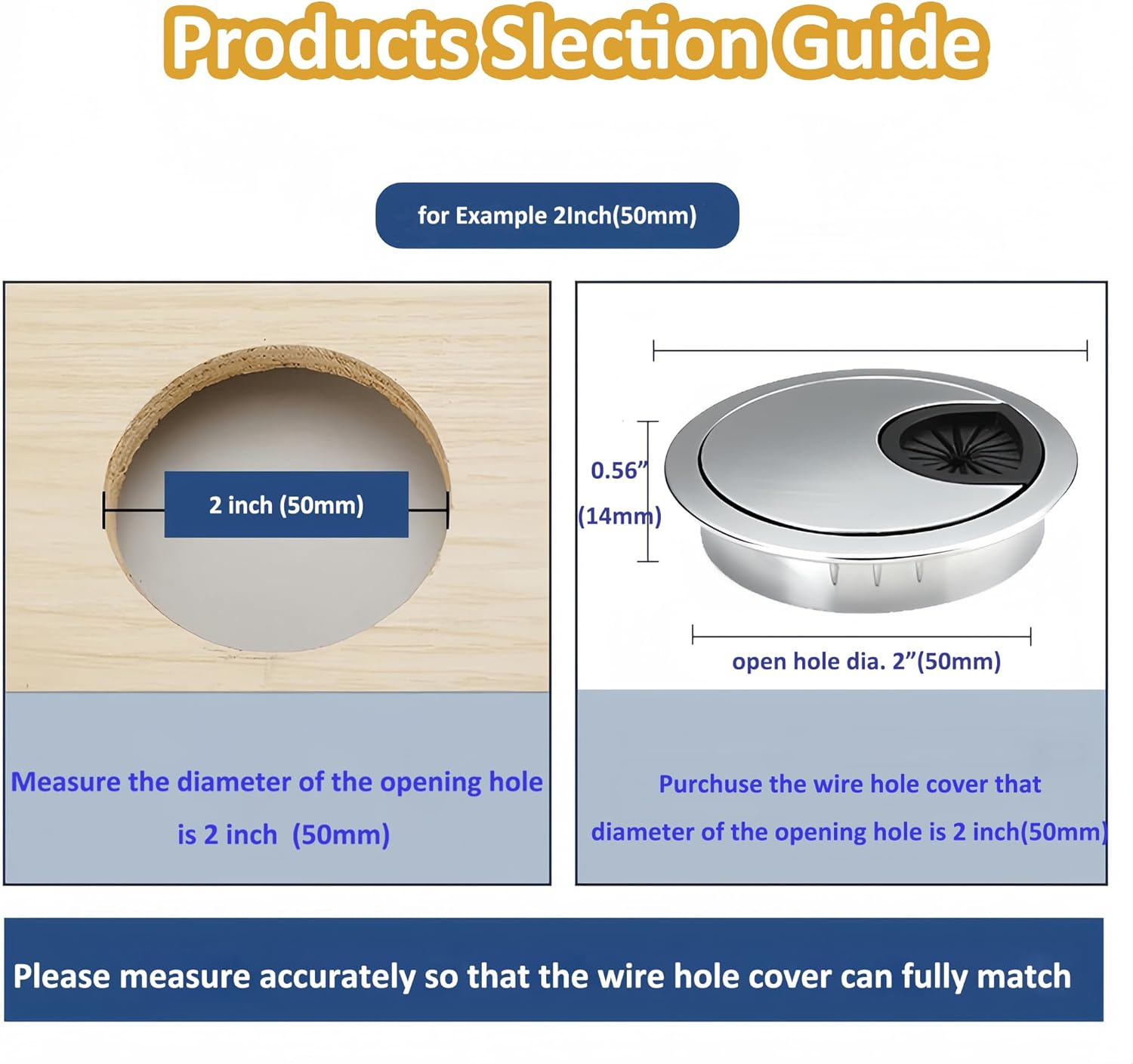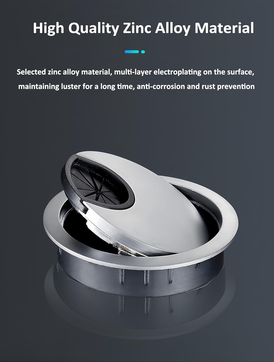 3 Pcs Satin Nickel Metal Cable Grommet, Zinc Alloy Desk Table Grommet Cable Cord Hole Cover for Home and Office, Fits 2inchs Hole 50MM Brushed Silver