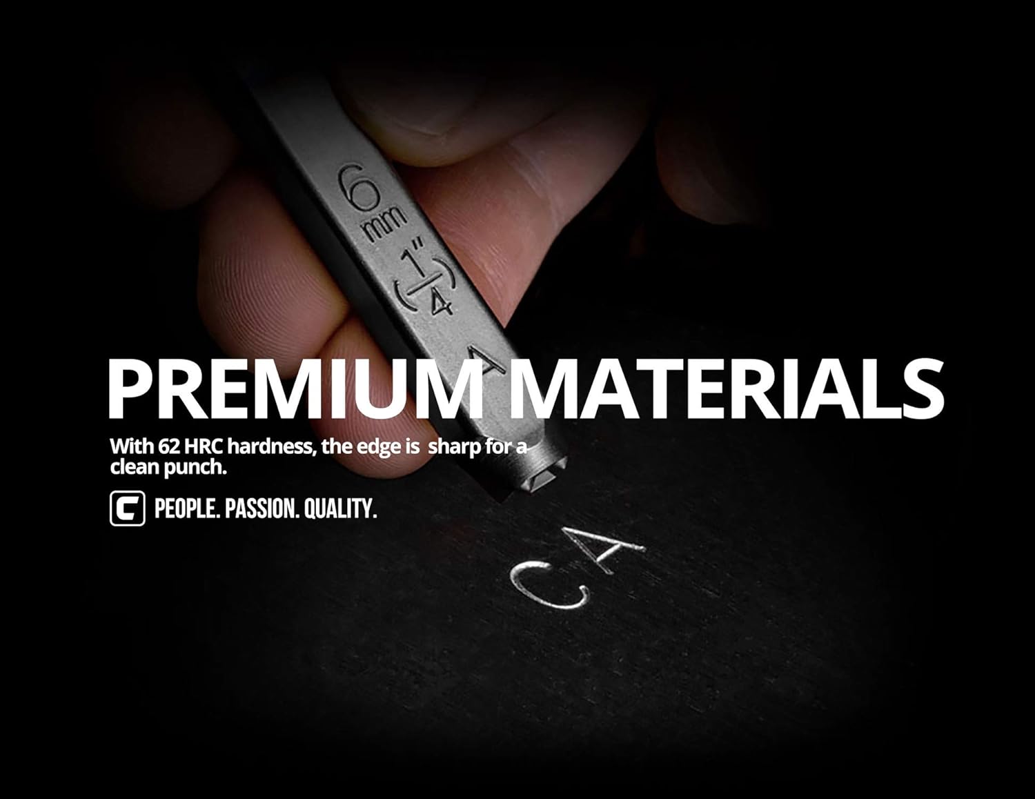 - Premium Chrome Vanadium steel with differential heat treatment to achieve optimal performance and durability. 62 HRC hard stamping end produces high quality imprints and keeps the edges sharp. 42 HRC tough hammering end excels at absorbing repeated hammer strikes and maintaining durability