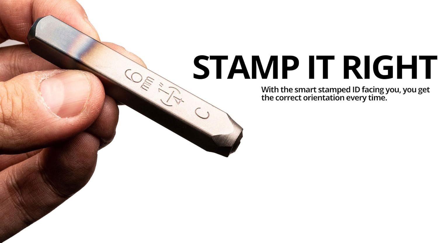 - Find the right stamp and orientation easily with engraved sizing and letter identification on the front side of each stamp