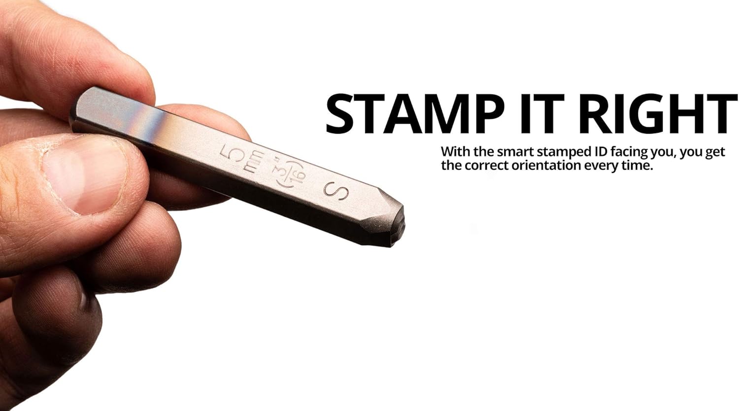 - Find the right stamp and orientation easily with engraved sizing and letter identification on the front side of each stamp
