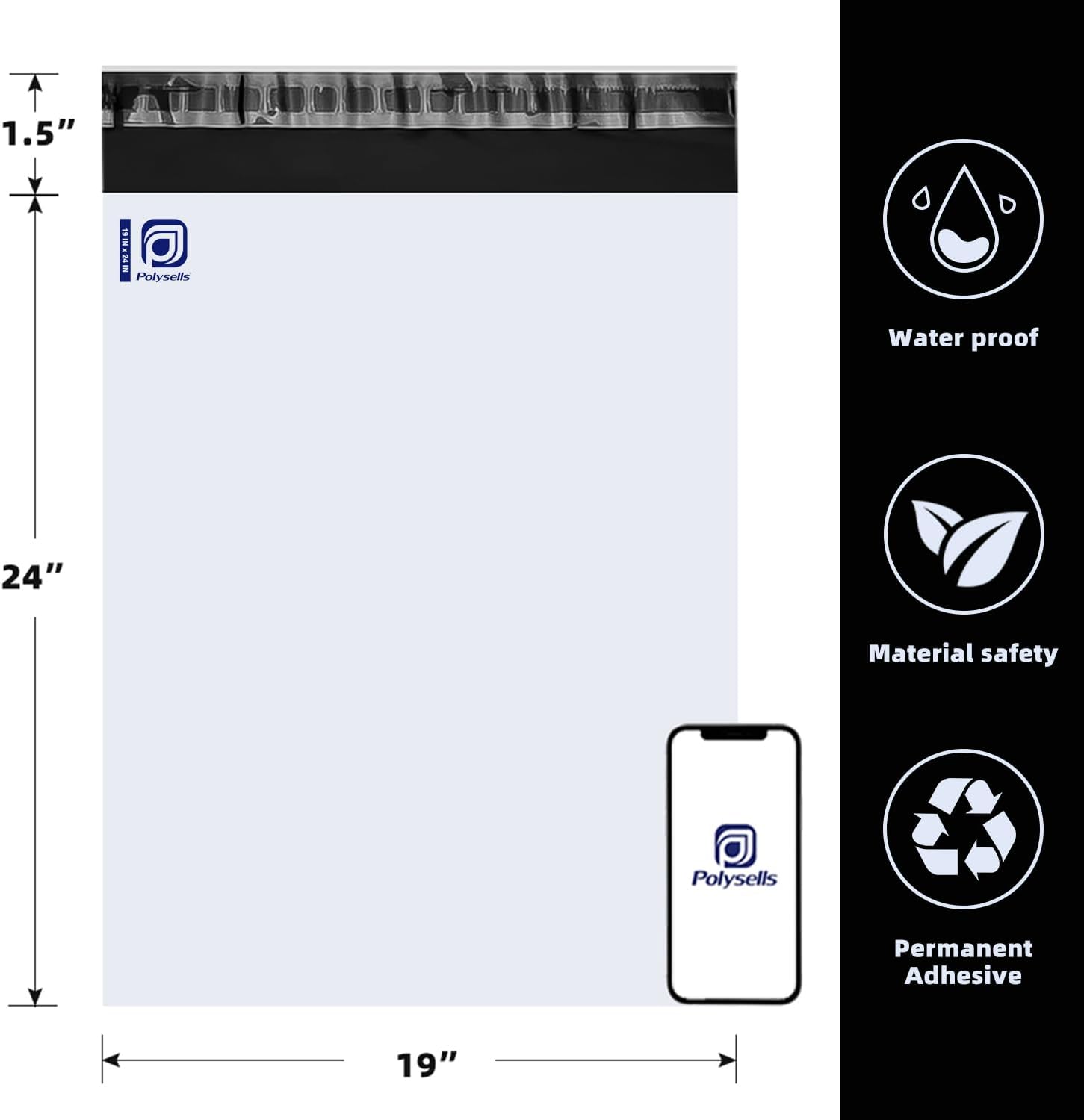 POLYSELLS 300 19x24 Inch White Pack Large Poly Mailers Shipping Envelopes, Strong Adhesive Sealing, Waterproof, and Tear-resistant Postal Mailing Bags for Clothing, and Accessories