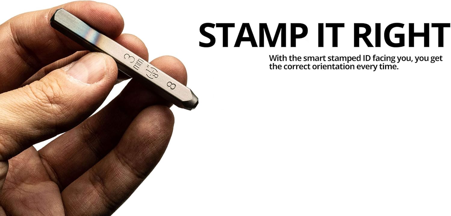 - Find the right stamp and orientation easily with engraved sizing and letter identification on the front side of each stamp