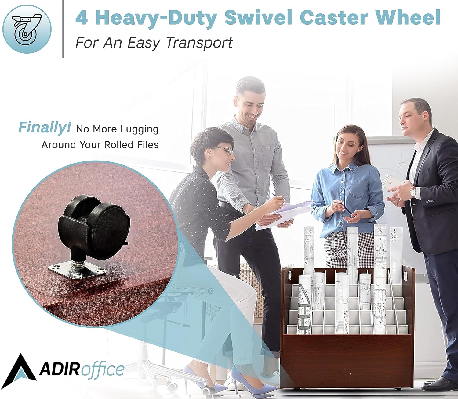 - Versatile use: Adir’s rolled files organizer serves multiple purposes. It can be used as a blueprint storage cabinet, rolled poster storage, vinyl roll holder, map storage cart, architectural plan storage, and more.
