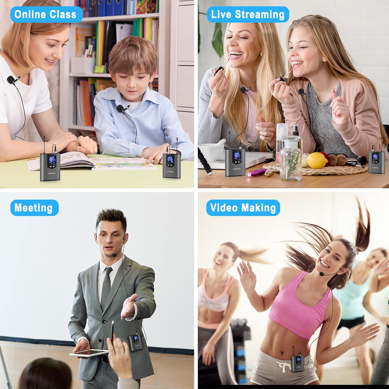 - MULTI-USE APPLICATIONS: The two undirectional condenser headset microphones and lavalier lapel microphones are comfortable to wear, picking up your voice from any angle, they deliver warm, clear and loud high fidelity sound. Ideal for church, training, classroom, interview and business presentations etc.