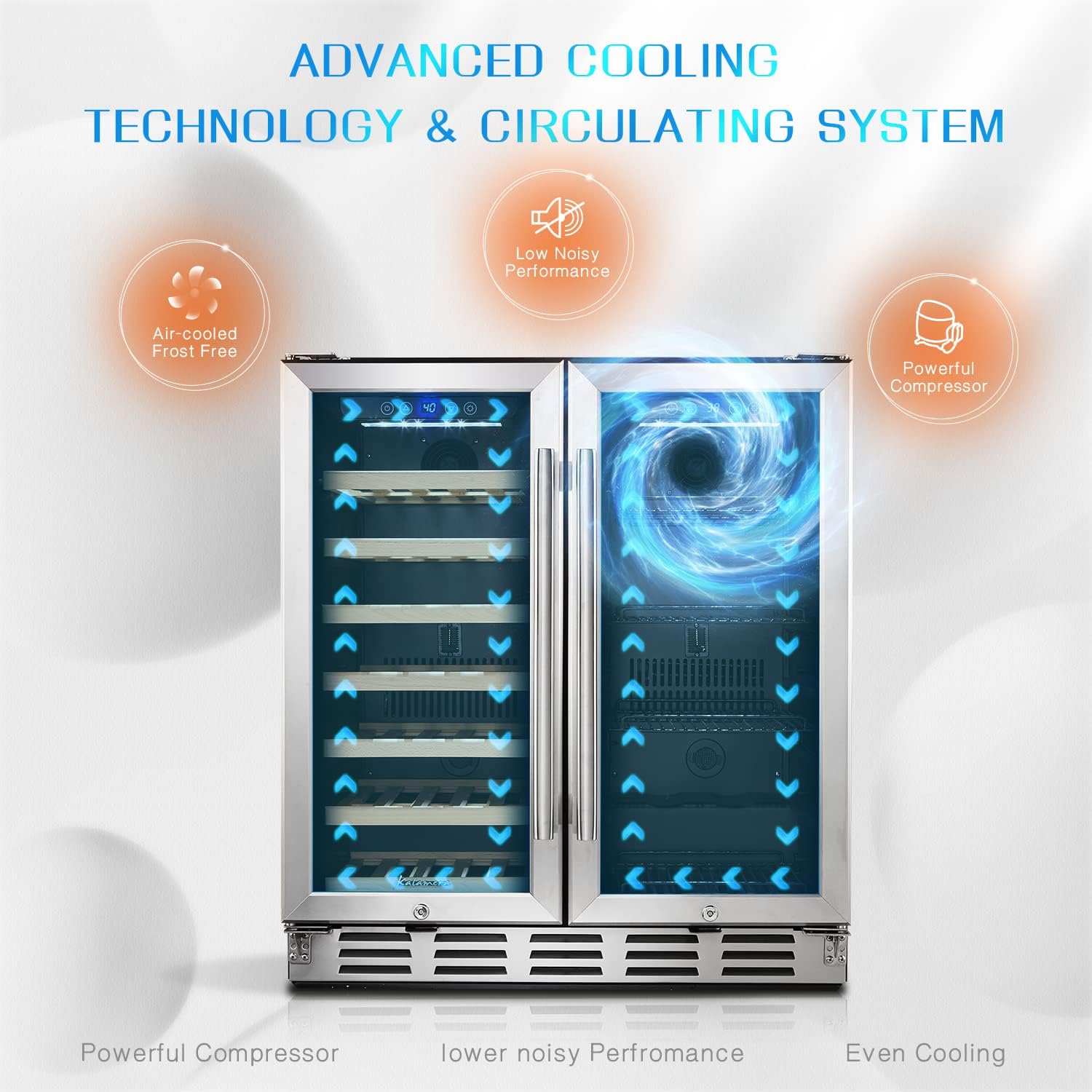 Kalamera Wine and Beverage Refrigerator, 30 inch Wine Fridge Dual Zone Hold 33 Bottles and 96 Cans, Digital Touch Control, Built-In or Freestanding