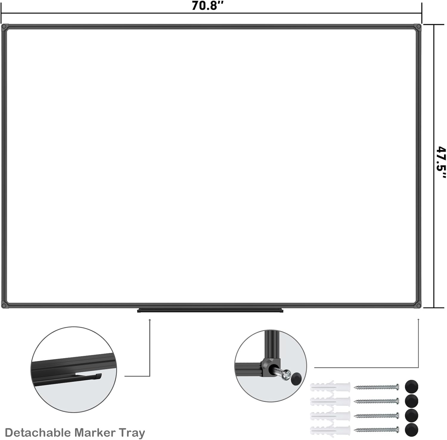 - SMOOTH & ROBUST DRY ERASE PERFORMANCE: Smooth Scratch-Resistant surfaces, enjoy writing message notes on 70.8" x 47.5" whiteboard, easily dry wipe with all dry-erase markers.
