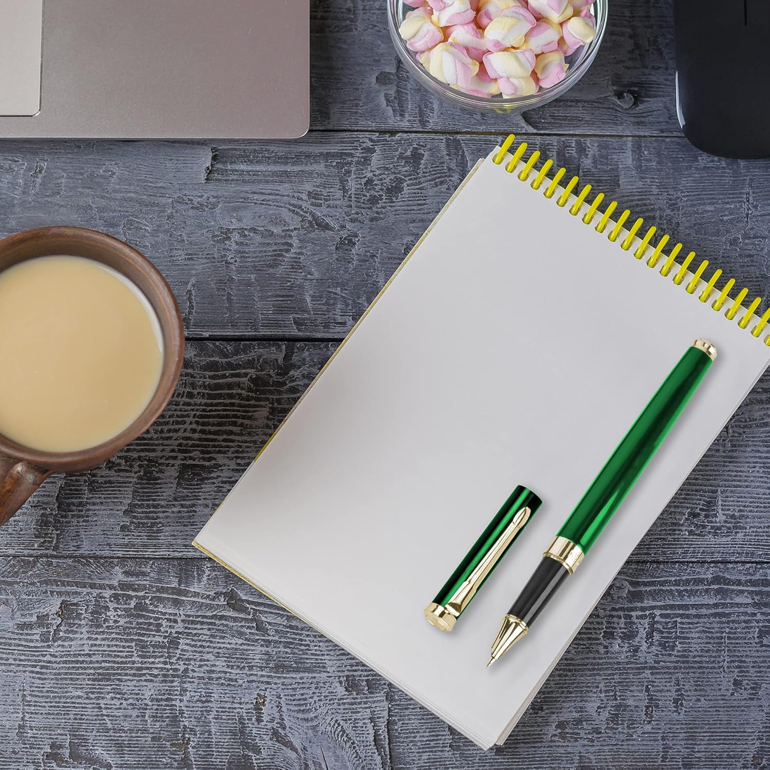 Dryden Designs Fine Nib Fountain Pen - Includes 24 Ink Cartridges - 12 Black and 12 Blue - Emerald Green - Smooth Elegant Writing with Fine Nib and Ink Converters