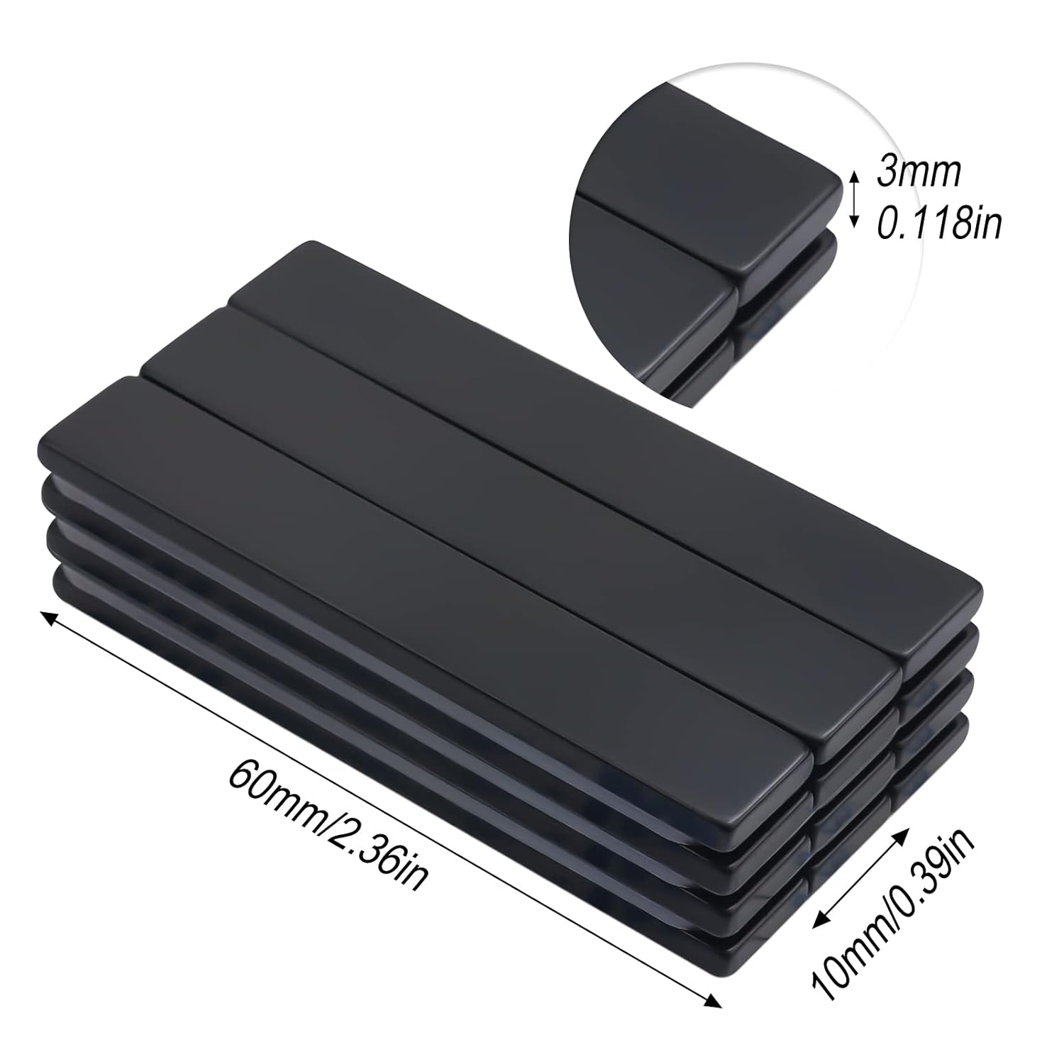 - 【MAGNETS DIMENSIONS】The size of heavy duty magnet: 60mm x 10mm x 3mm (approx. 2.36" x 0.4" x 0.12"), Tolerances: ±0.2mm x ±0.2mm. Color: black
