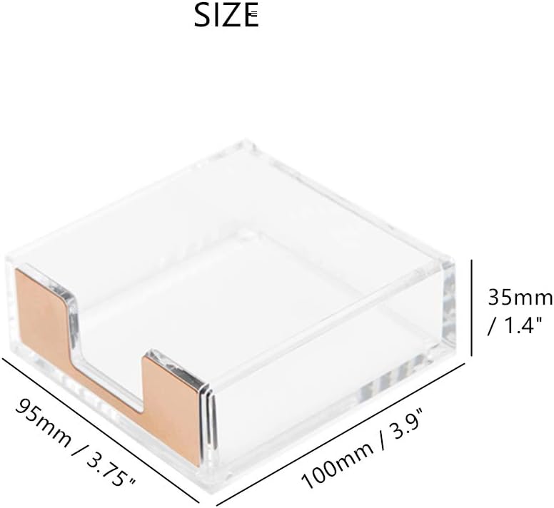 - 【MEASUREMENT】 -- The sticky note holder size is 100mm x 95mm x 35mm(3.9" x 3.75" x 1.4") for the notes cubes less than size of 90mm x 85mm(3.5" x 3.3");