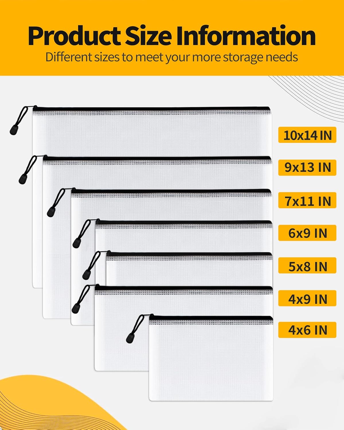 - PACKAGE CONTAINS: You will get a set of 21 Packs of Multi-size plastic zipper pouches, (10x14 inches)*3, (9x13 inches)*3, (7x11 inches)*3, (6x9 inches)*3, (5x8 inches)*3, (4x9 inches)*3, (4x6 inches)*3. It can help you organize your miscellaneous items to meet your daily life and work. Manufacturer recommended age 3 years and up