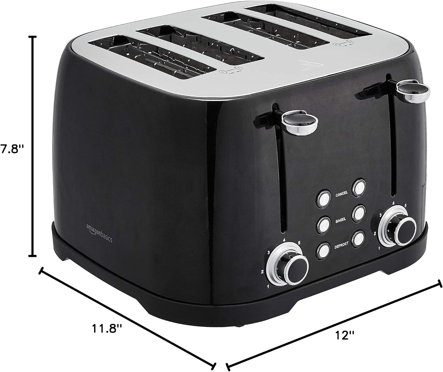 Amazon Basics 4 Slice Toaster, 6 Browning Settings, Removable Crumb Tray, Bagel and Defrost Function, Cancel Button, 1600W, Black
