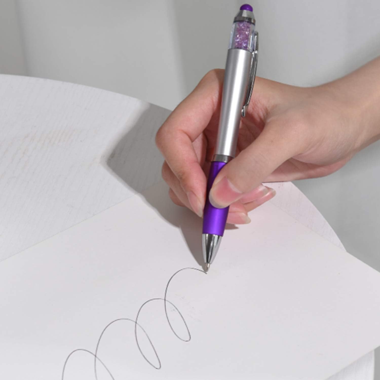 MiSiBao Stylus Pens for Touch Screens, Medium Point Pens with Crystals for Women and Kids Black Ink Pen with Stylus Ballpoint Pens with Comfort Grip for The Ipad(10 Count+4 Refills)