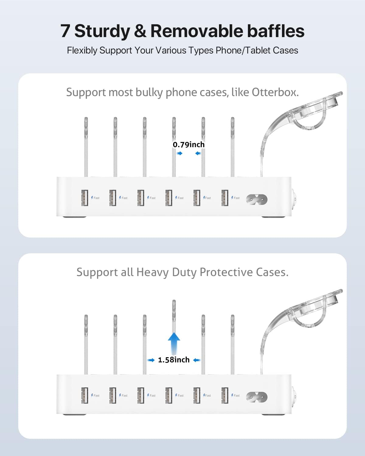 - ăWhat You Can Getă 1- SooPii Charging Station, 7 strong baffles for phones and tablets,1 baffle Holder for iWatch Charger & Air-pods (iWatch Charger is not included in package) and 6-Pack short Mixed charging cables (2pc for lPhone & lPad,2pc Type C,2pc Micro) for your daily use,user manual.