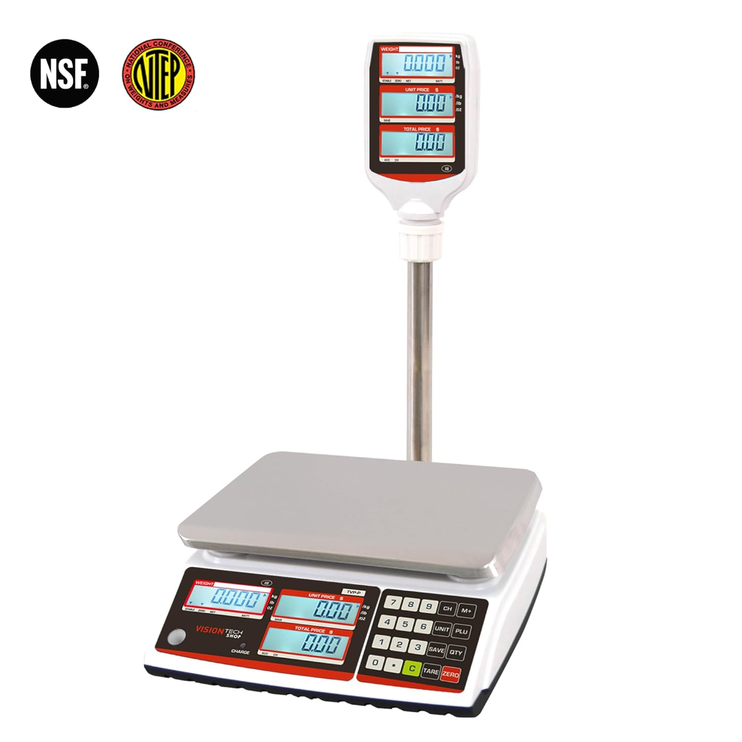 VisionTechShop TVP-60P Price Computing Scale with Pole Display, Lb/Oz/Kg, 60lb Capacity, 0.01lb Readability, NTEP Legal for Trade COC #19-038, NSF Certified