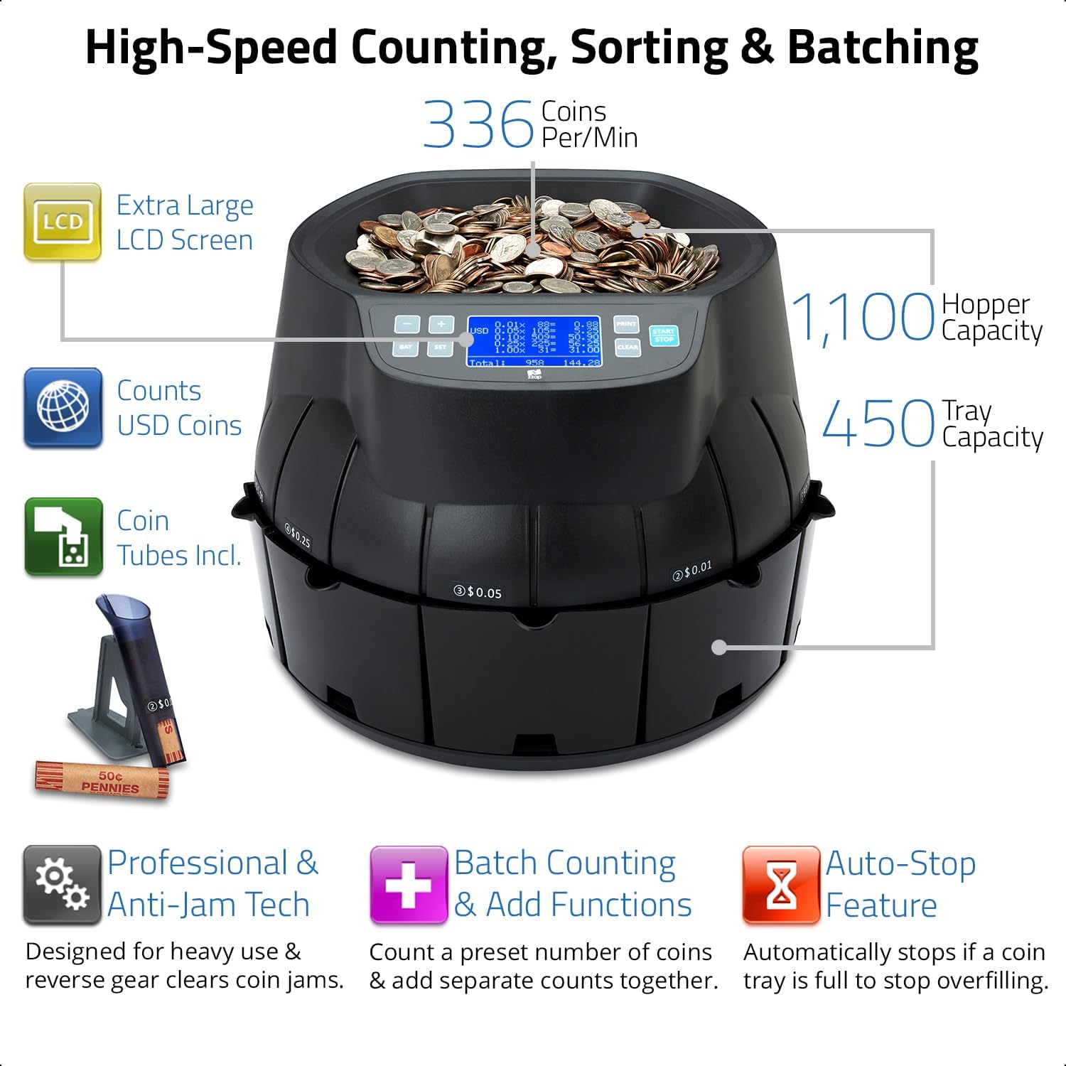 - New 2025 model / Fastest coin counter & sorter on the market - 345 coins/minute / Market leading hopper capacity - 2,300 coins