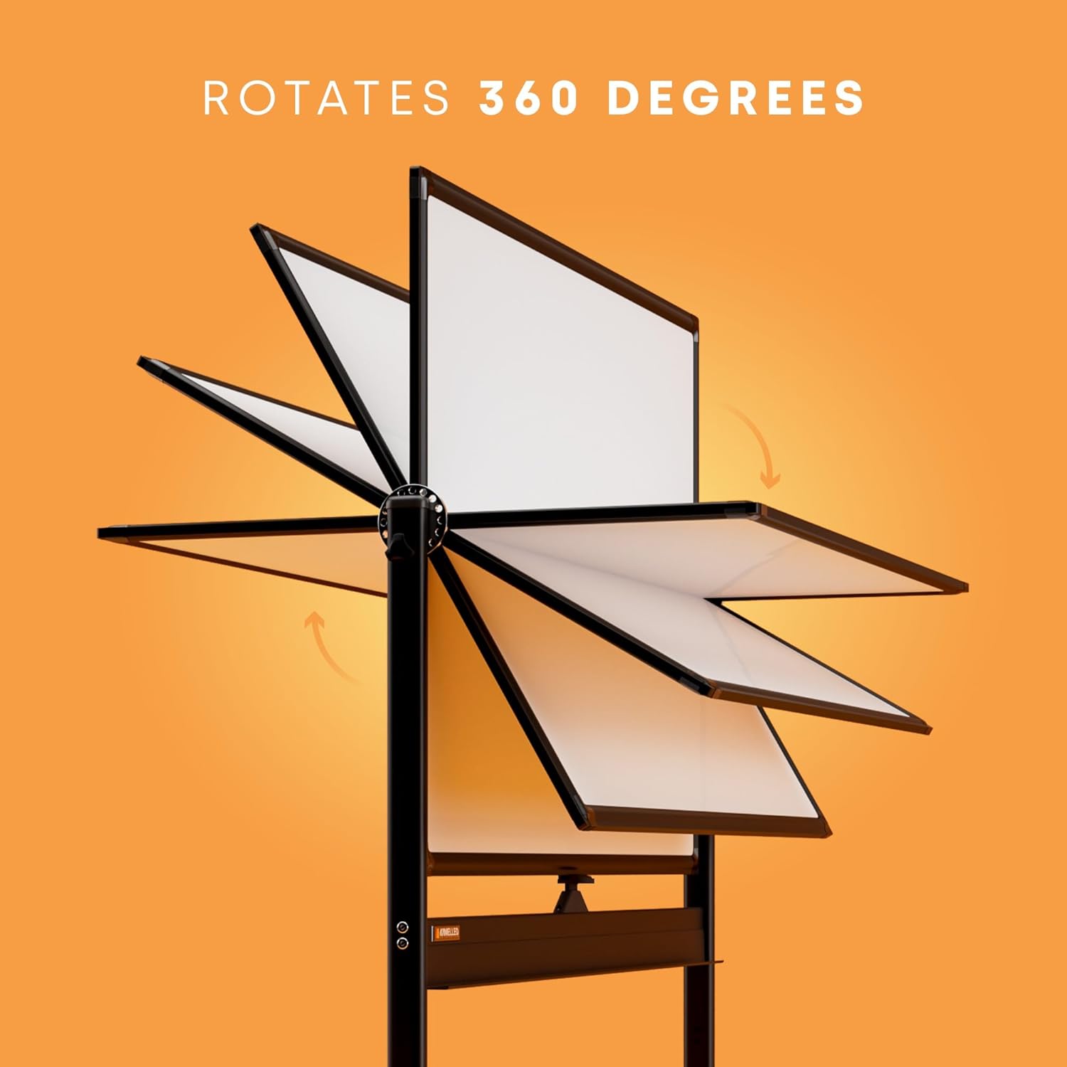 - Easy to Move and Adjust: Our mobile whiteboards feature Swing-Stop wheels and an easel frame that can be locked in place to maximize stability. The double-sided easel stand can easily flip to maximize whiteboard space and the dry erase boards feature magnetic surfaces, which allow you to easily organize accessories.