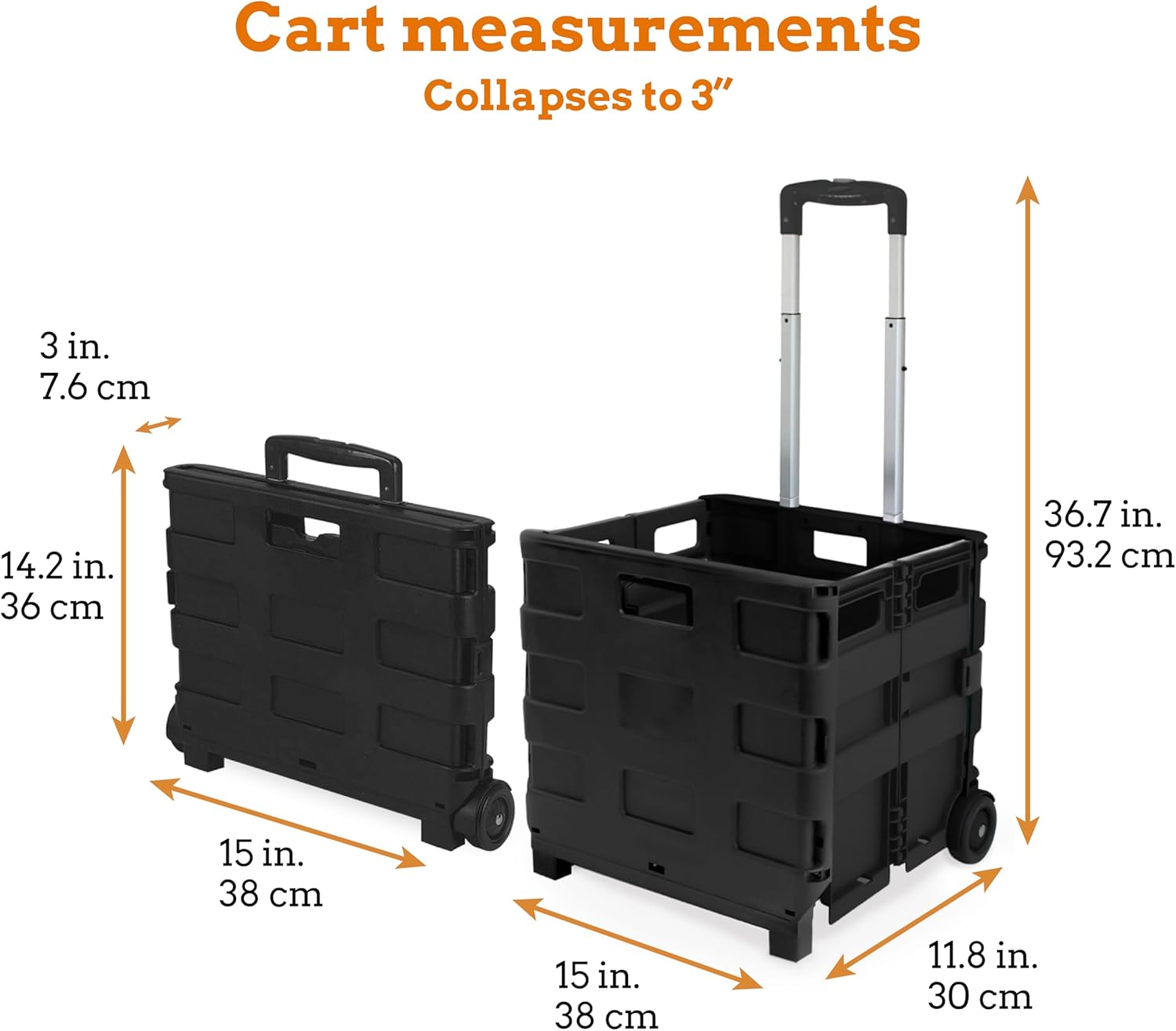 - HIGH CAPACITY UTILITY CART: Heavy Duty Construction- Holds Up To 50 Lbs: Collapses To 3" When Folded Flat / 15" When Fully Expanded
