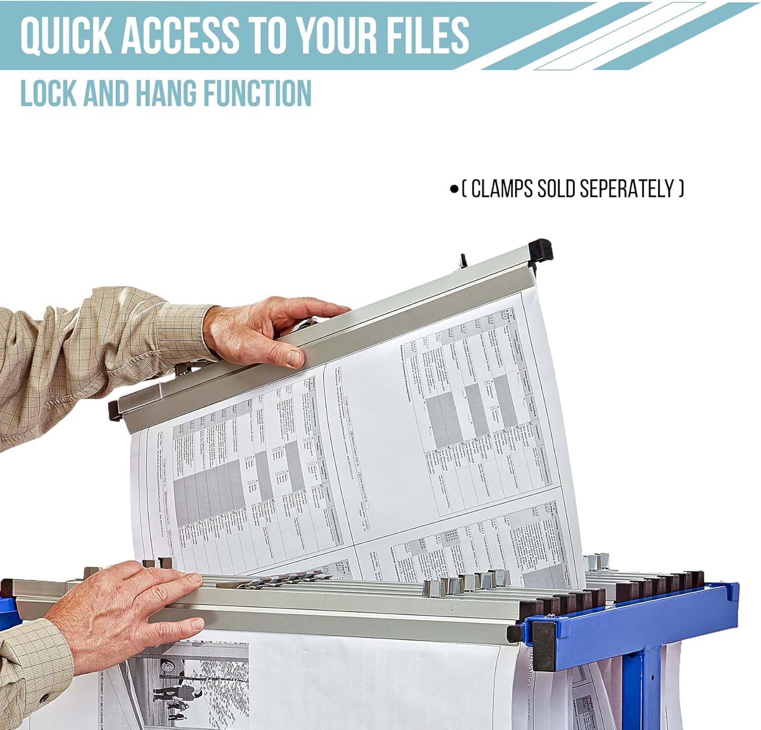 - Sizes & Colors: AdirOffice blue print holder is available in 5 different colors β black, white, blue, red, and beige. This mobile drawing rack works with a 30", 36", and 42β file hanging clamps to suit your needs. (Clamps are sold separately from Adir Corp).