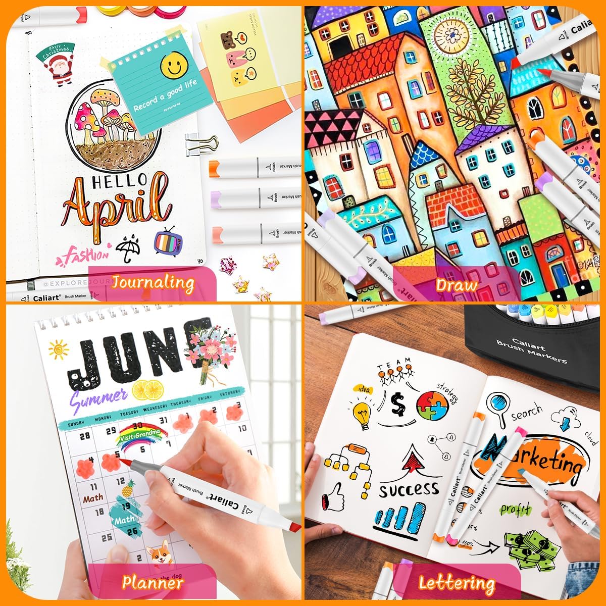 Caliart Alcohol Brush Markers, 51 Colors Dual Tip Artist Brush & Chisel Tip Sketch Art Markers, Aesthetic Cute Preppy Stuff School Supplies, Pens for Lettering Cards Drawing Mothers Day Gift for Mom
