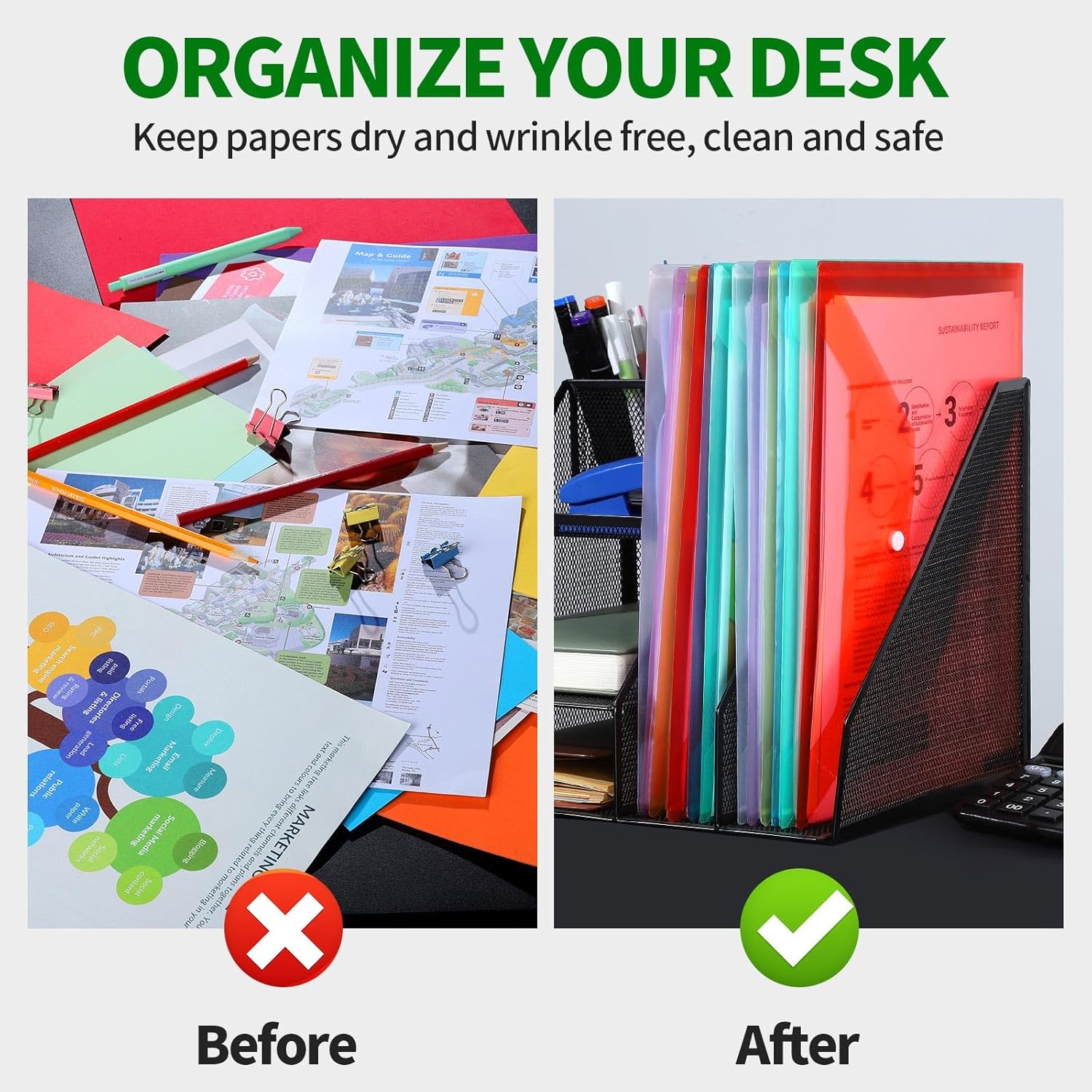 - Versatile Plastic Folders: 12.76β x 9.15β plastic envelopes, can be filled with paper or little things, keep things in order, reduce mess, bring comfortable feeling; well protect against water, scratch, friction, dust, etc., keep things in good condition, away from curling up, damage, smear, loss etc..