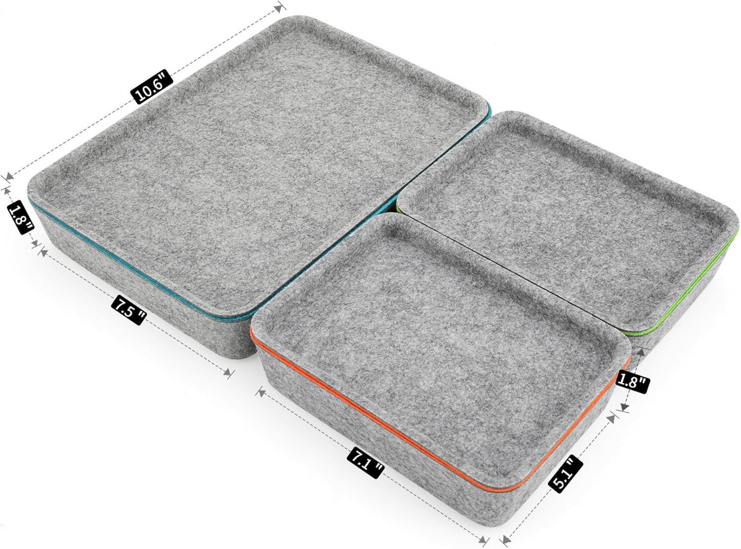 - ăSustainable materială recycled felt with a comfortable touch feeling. no noise like plastic keeps stuff from flying around in the drawer. The soft felt material protects your valuables from scratches while adding a touch of sophistication to any space.