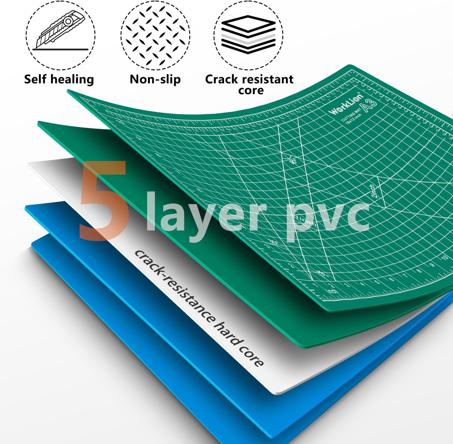 WORKLION Self Healing Cutting Mat - 12 x 18 inch Double Sided 5-layer Gridded Rotary PVC Cutting Board, for Sewing, Quilting, Scrapbooking and Arts & Crafts Projects (5 Pack)