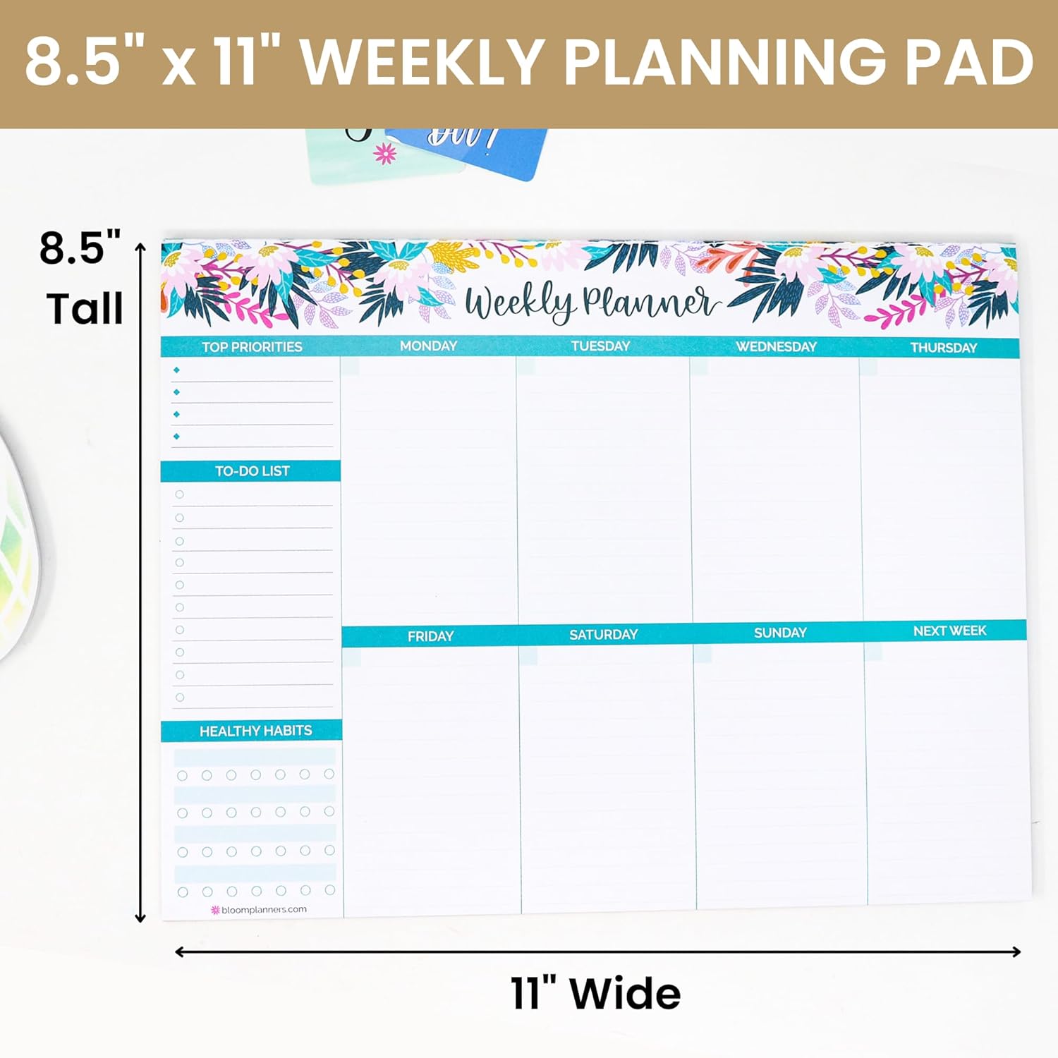 bloom daily planners Horizontal Weekly Tear-Off To Do List Planning Pad - Undated Notepad Organizer & Healthy Habit Tracker - 8.5β x 11β - Floral