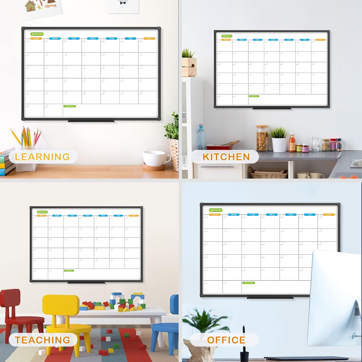 JILoffice Dry Erase Calendar Whiteboard - Magnetic White Board Calendar Monthly 36 X 24 Inch, 2 Pack, Black Aluminium Frame Wall Mounted Board for Office Home and School