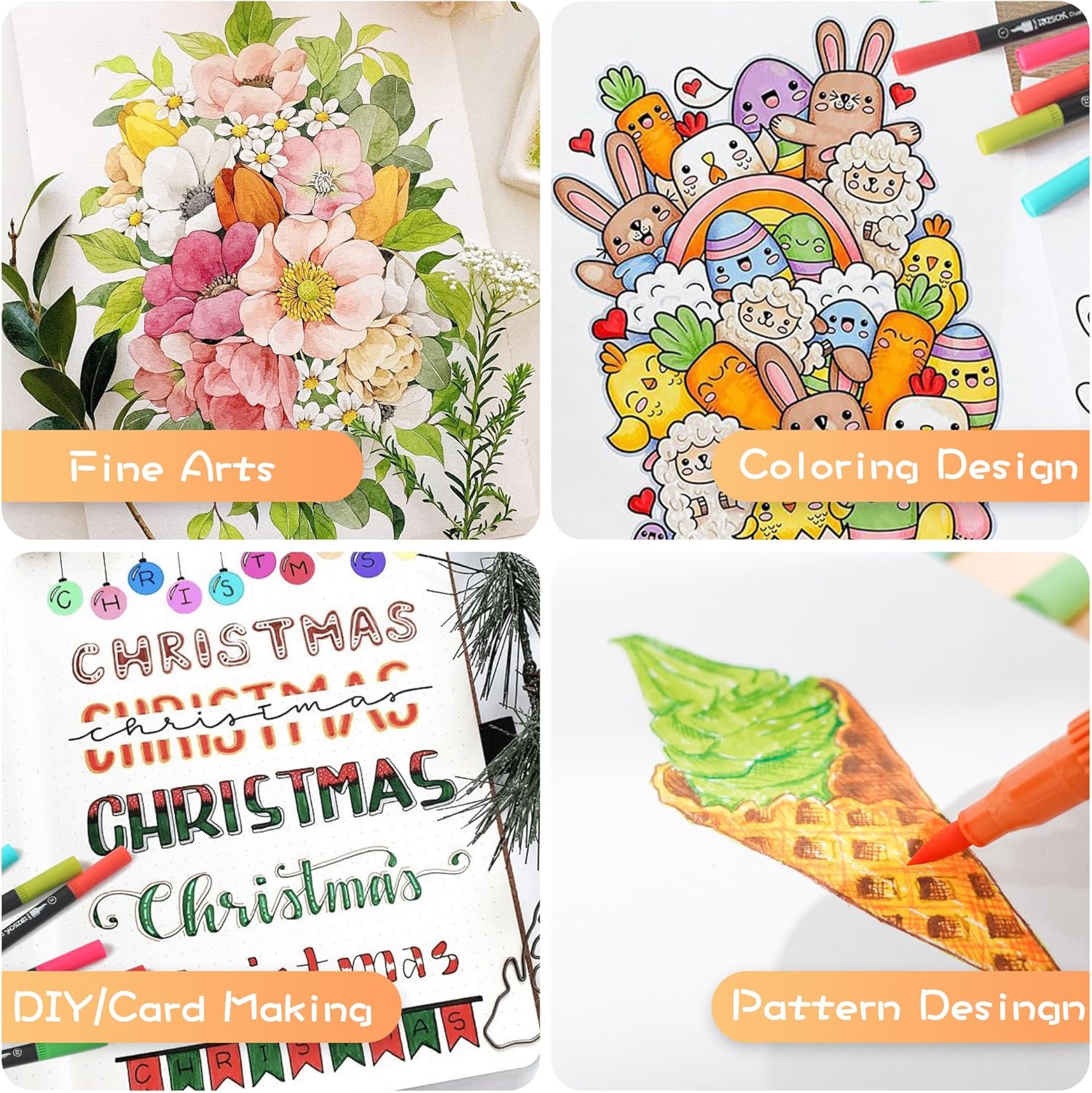 ZSCM 32 Colors Duo Tip Brush Markers Art Pen Set, Artist Fine and Brush Tip Colored Pens, for Adult Coloring Books Christmas Cards Drawing, Note taking Lettering Calligraphy Journaling