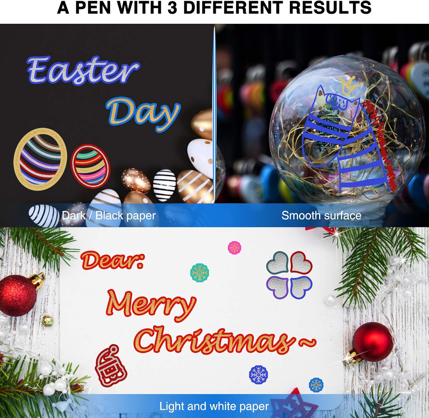 - β WIDE RANGE OF APPLICATIONS - Our self-outline metallic markers can be used for writing Christmas gift cards, decorating Easter eggs, personalizing photo albums, scrapbooks, envelopes, gift boxes,and creating birthday cards. They are great for adding accents to arts and crafts! Suitable for almost any surface, such as wood, canvas, fabric, plastic, metal, glass, rocks, ceramic, whiteboards, rubber, pottery, etc. Kids teens and girls love these special markers, making anything they write fun! Begin your journey into art NOW!