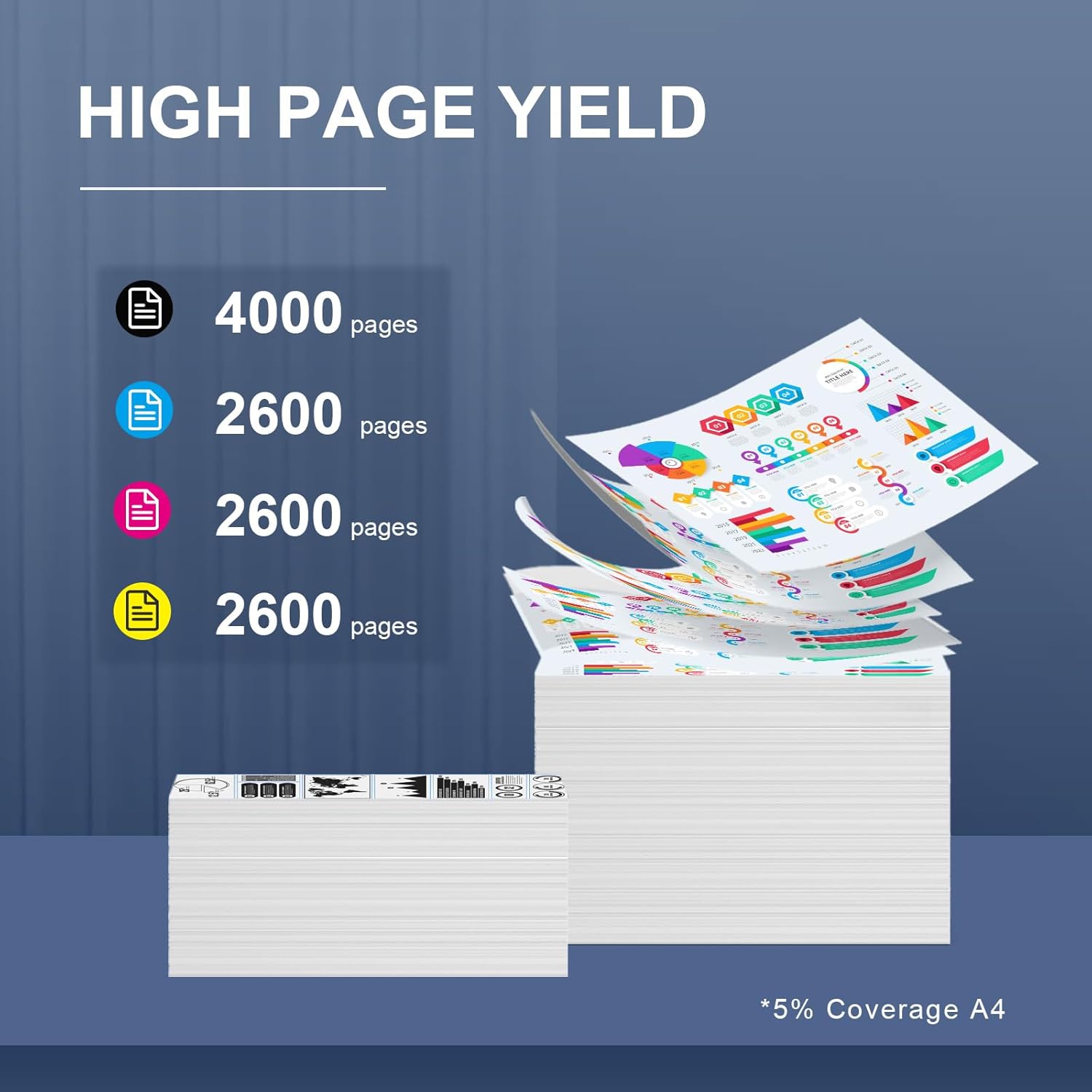 - 【High Page Yield】: Up to 4,000 Pages per TEINO 305A black toner cartridge; Up to 2,600 Pages per TEINO 305A cyan magenta yellow color toner cartridges at 5% coverage of A4 Paper.