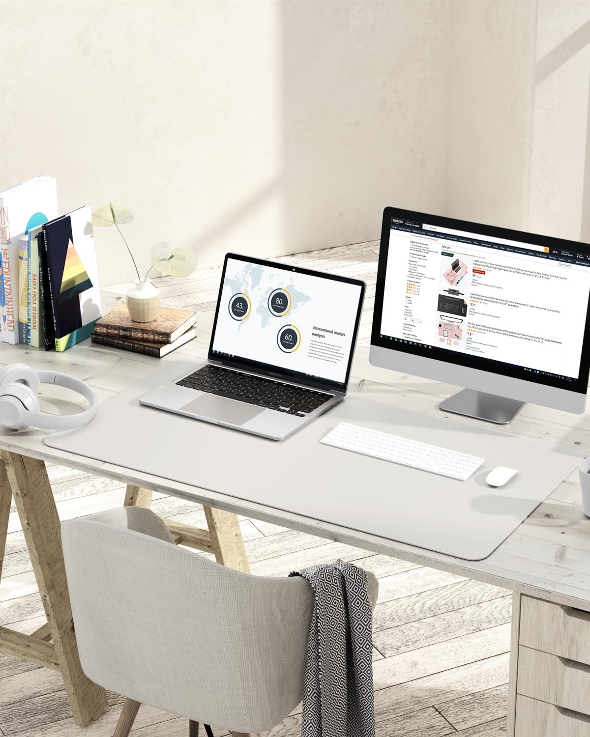 - No Need for Mouse Pad: No unpleasant smell, tasteful synthetic leather adds elegance to your workspace. Surface can be used as a mouse pad, comfortable resting surface for your hands while writing, typing, and using the mouse.