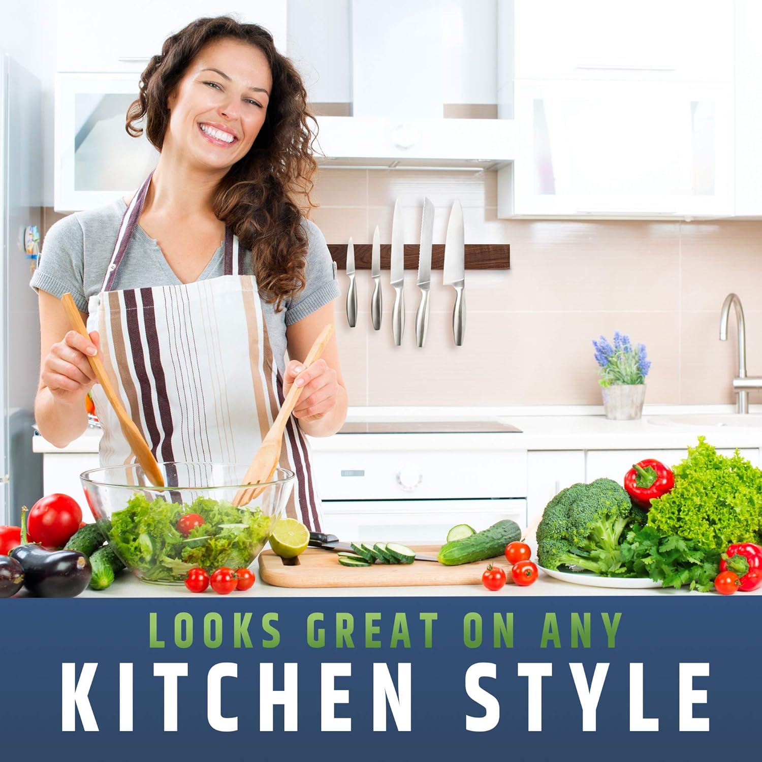 - CLEAN YOUR KITCHEN COUNTER & DRAWERS: Free up counter space with our magnetic knife strip, eliminating bulky knife blocks. Keeps your knives visible, within reach, and off the counter. Note: Not designed for fridge magnetization.