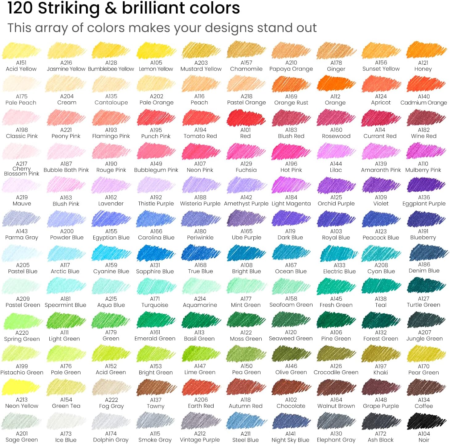 - Bright and Vibrant Colors: This set includes 120 fine point markers that deliver eye-catching content. Every pen is labeled with the color number on the barrel and the name for easy identification.