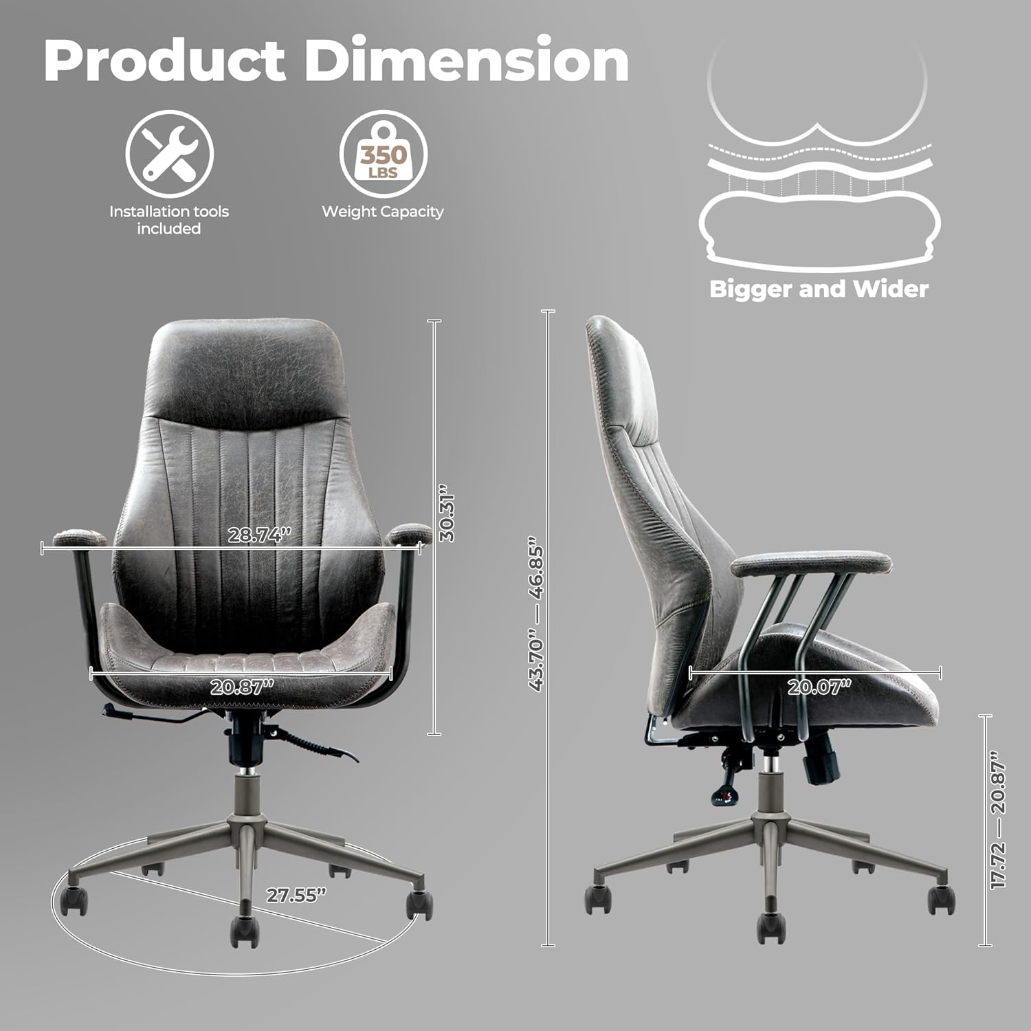 - Comfy Ergonomic Seat: This luxury executive chair is designed for ergonomics, 90Β° to 120Β° tilt adjustment, to adapt to your various sitting experience, you can adjust the strength of the tilt through the tension, so that you can relax and comfortable to do things, the removable armrests and height adjustment function can be applied to different heights of the desk. 360Β° swivel rotation rolling allows you to move more efficiently
