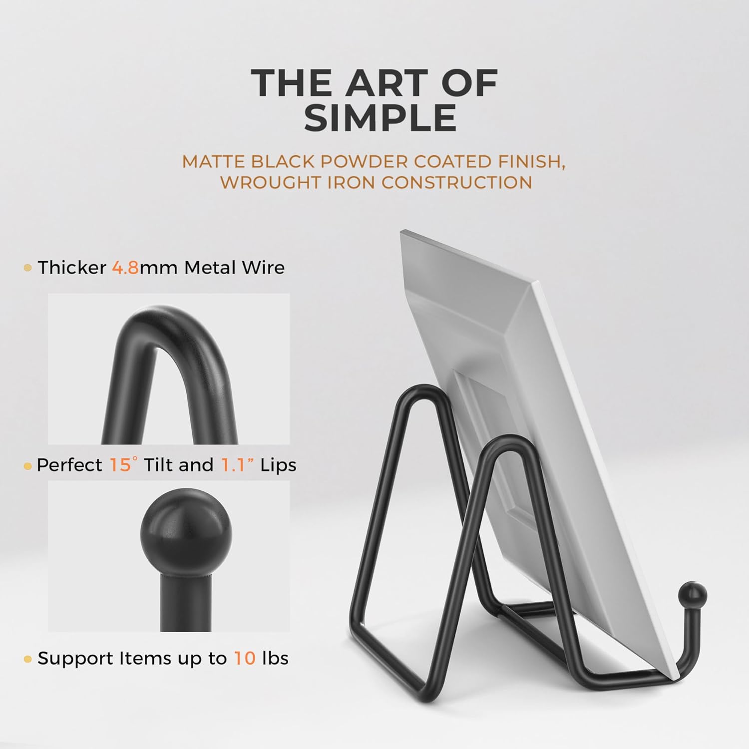 - SMALL BUT STURDY DESIGN: - This plate display stands has a matte black powder-coated finish and wrought iron construction, strong enough to hold decorative plates, painted tiles, commemorative plaques, photo frames, postcards, pictures, book, canvas, etc.